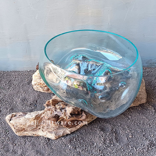 molten glass bowl large 30cm wholesale, bali molten glass bowl driftwood wholesale