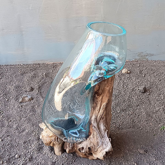 molten long glass terrarium 25cm wholesale, bali molten glass terrarium driftwood wholesale