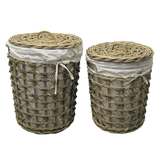 Round Rattan Basket With Lid Pale Grey Set Of 2