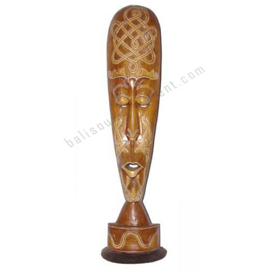 Wooden Carved African Mask Brown On Base 100 cm