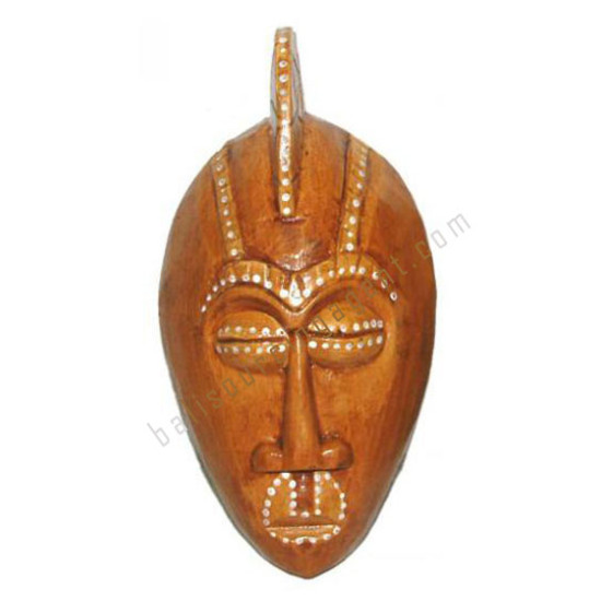 Wooden Brown African Mask White Dots