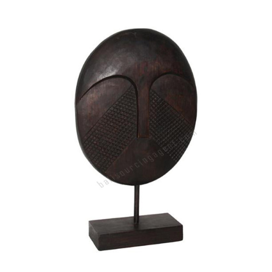 Wooden Carved Dark Brown Face With Stand 50 cm