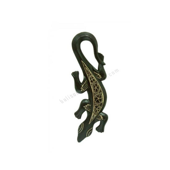 Wooden Gecko Black Painted Flower Motif