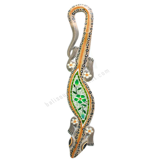 Wooden Grey Gecko Mirror Green Flower 100 cm